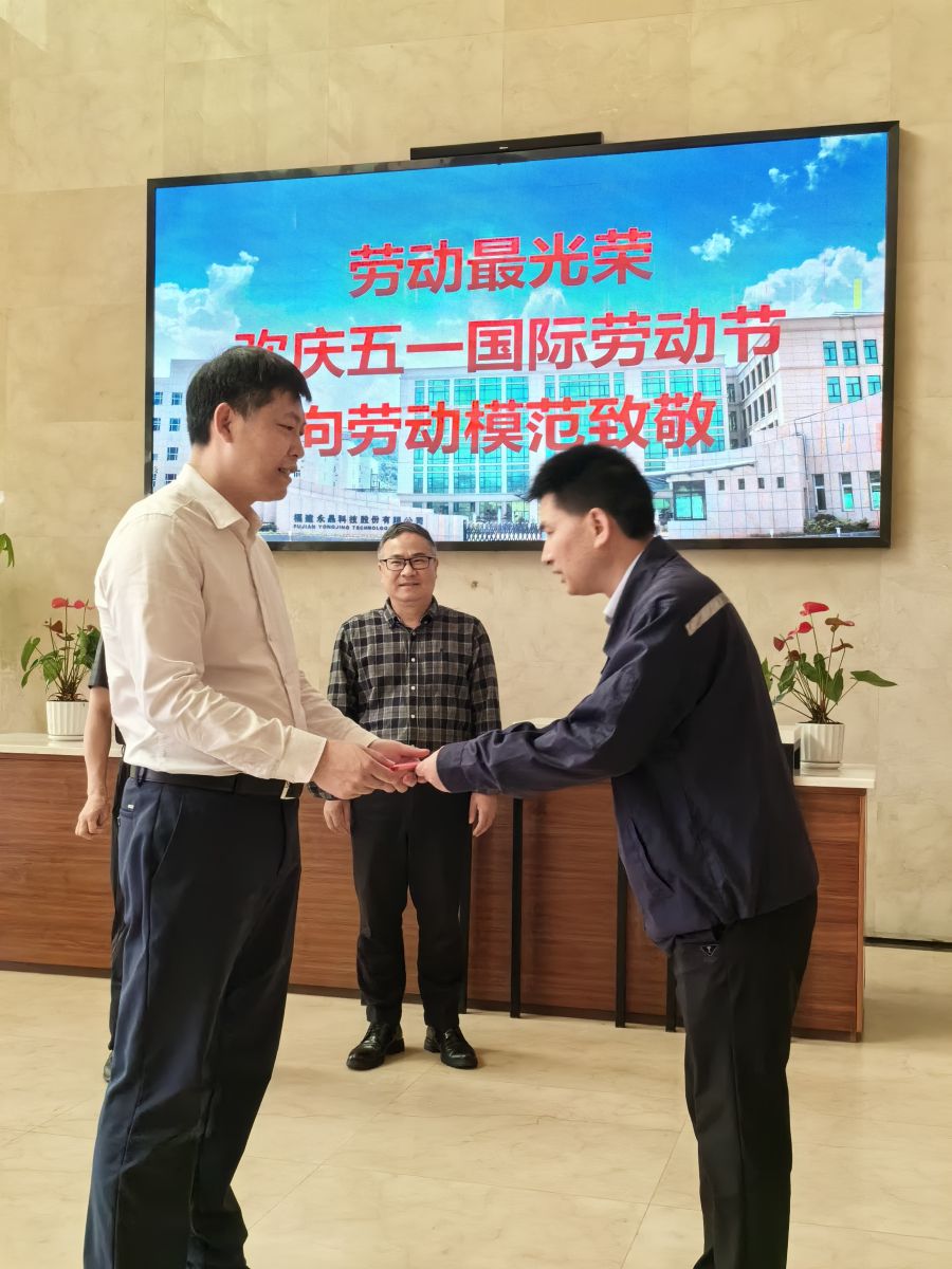 4月29日上午,在“五一”國際勞動節來臨之際,邵武市委書記陳顯卿一行蒞臨永晶科技慰問“五一勞動獎章”獲得者曹武亮,公司總經理周國斌、副總經理兼工會主席曾獻勛等公司管理層熱情接待并全程陪同慰問活動。